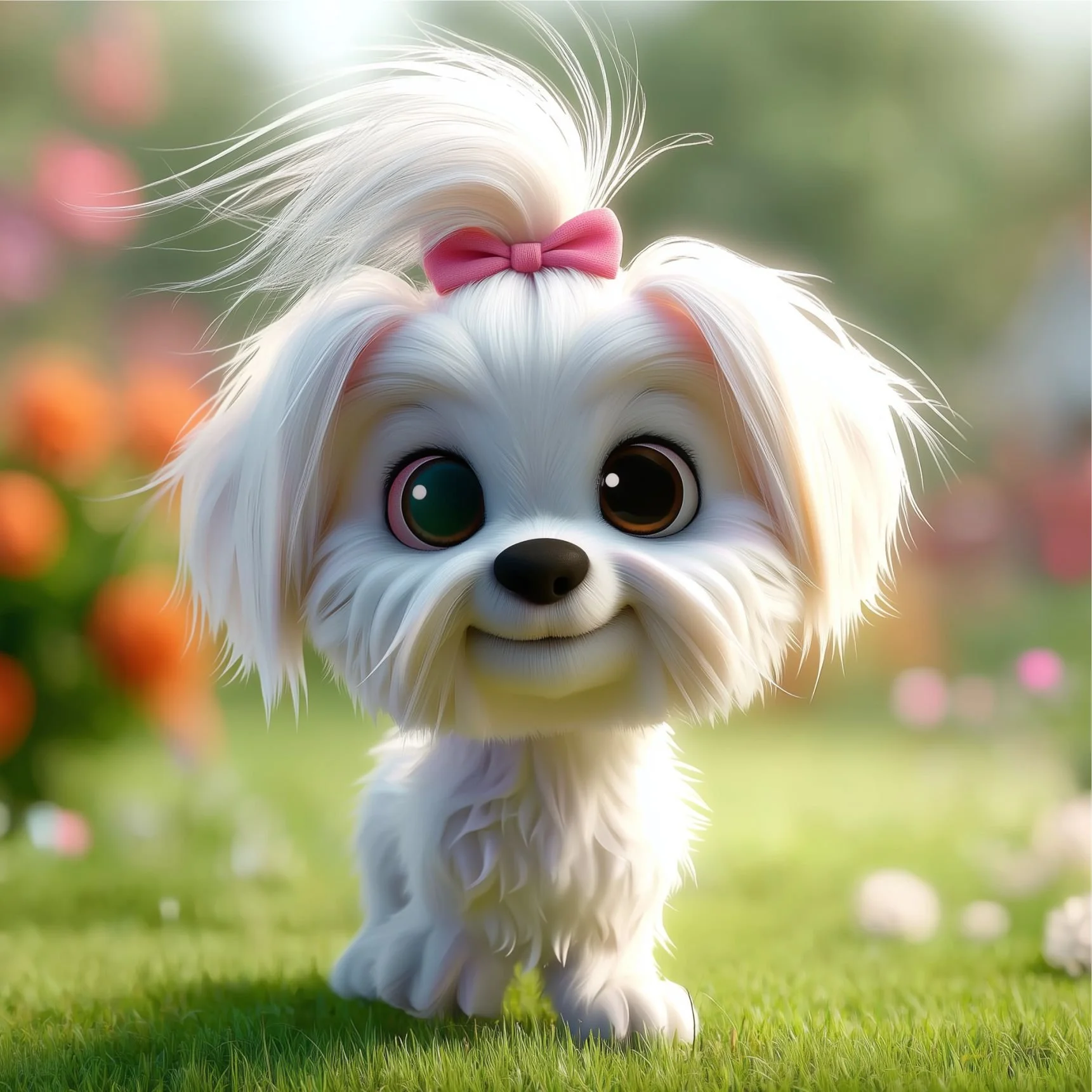 Joslin is a little Maltese with a big personality—and a pink bow perched perfectly on her head. She knows she’s fabulous and isn’t shy about showing it, strutting with confidence wherever she goes. Energetic, playful, and always up for a giggle or a game, Joslin keeps the garden gang lively. Though she loves a bit of mischief, she’s a loyal friend who helps Bailey feel at home and brings sparkle to every adventure.