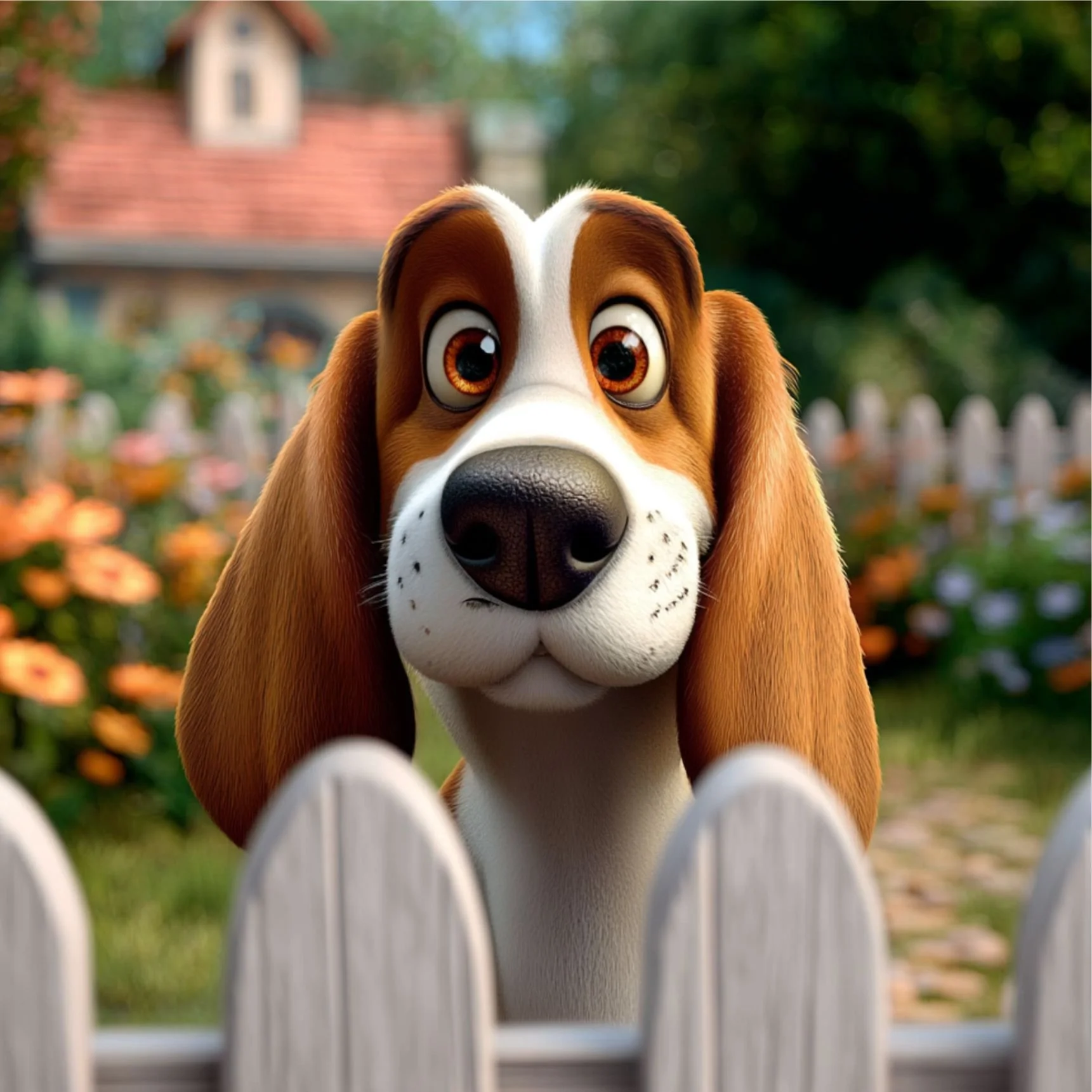 Fred is the lovable Basset Hound with droopy eyes and a tail that wags with quiet excitement. Always ready for a new adventure, he’s a little more cautious than the others, making sure every escapade is safe - though that doesn’t stop him from joining in the fun. With his loyal heart and steady presence, Fred is the perfect friend to keep Bailey company while exploring, sniffing, and discovering all the surprises of their garden and beyond..