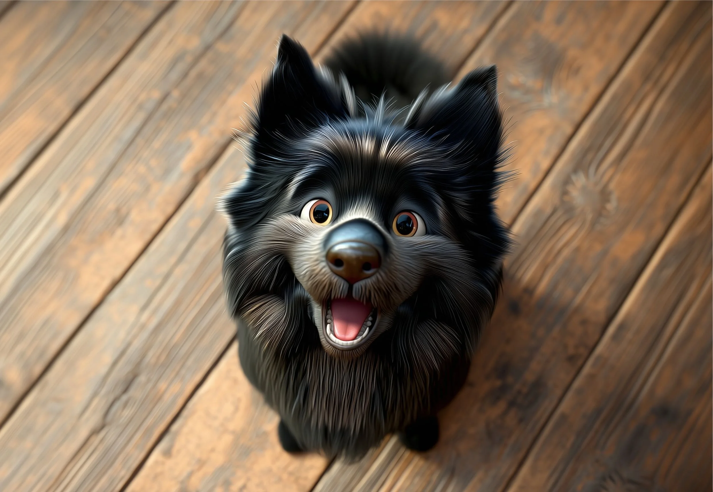 Bailey is a fluffy black chow with a curious nose, a gentle heart, and a tail that never stops twitching - sometimes like a tiny helicopter!