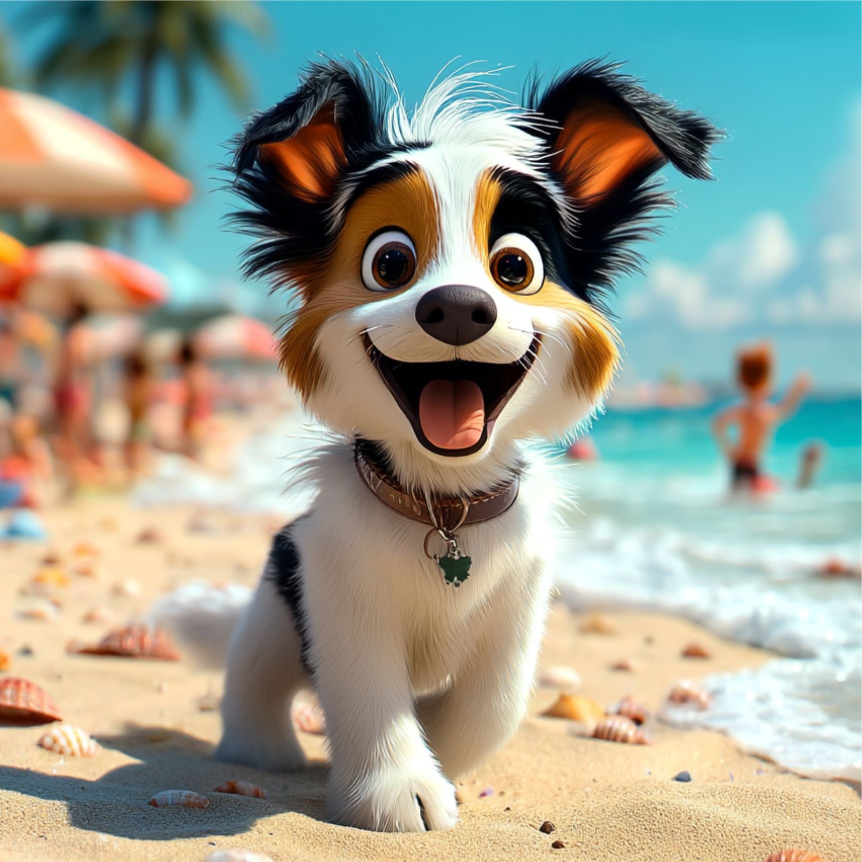 Flash is a lively little Jack Russell puppy, full of boundless energy and curiosity. Always ready to chase waves, sniff out new scents, and discover every hidden corner of the beach, he turns every adventure into a whirlwind of fun. With a wagging tail and a fearless heart, Flash shows Bailey that exploring new places is even better with a playful friend by your side.