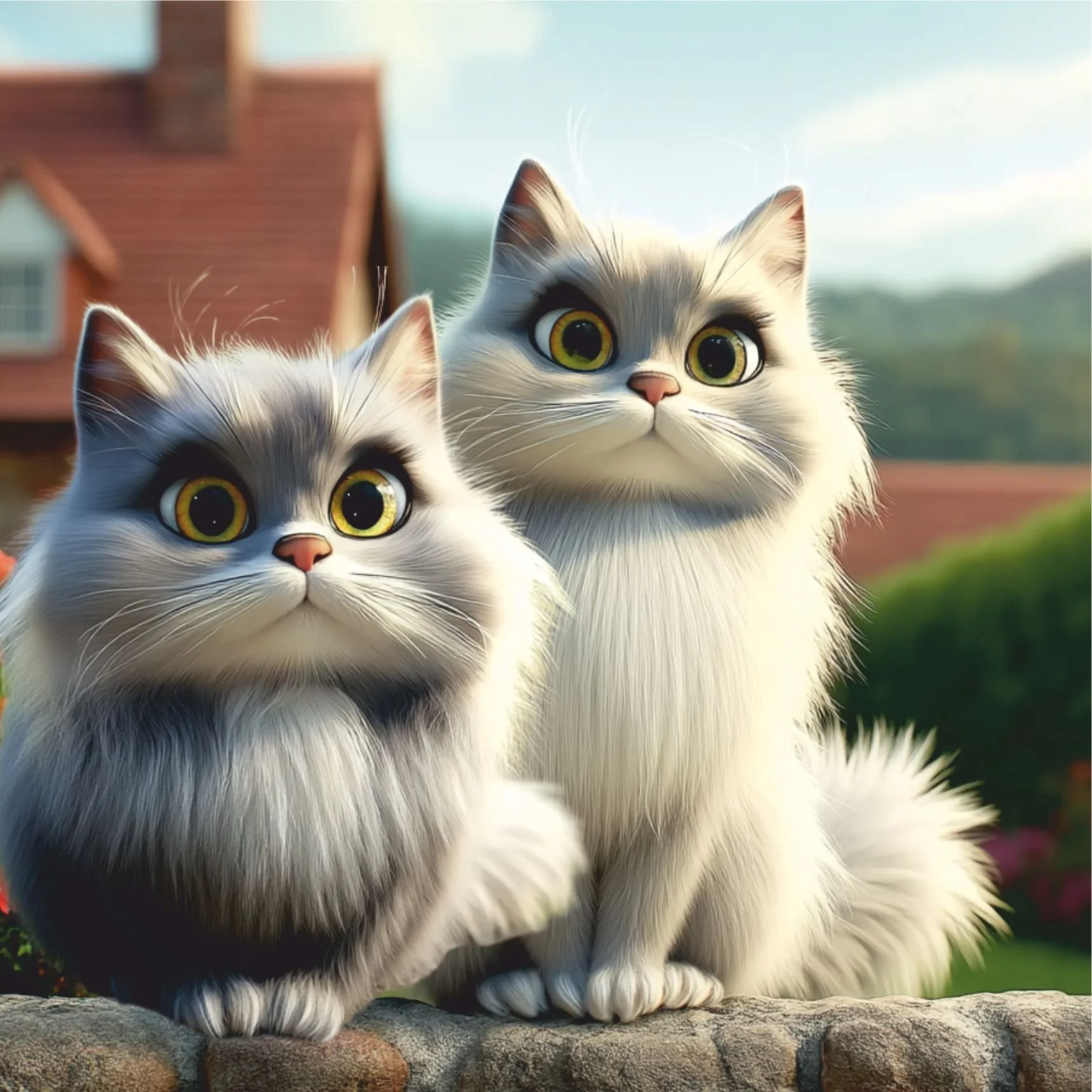 Sugar and Spice are the fluffy grey cats who rule the garden wall with quiet confidence. Calm, curious, and a little mysterious, they watch everything from their high perch and decide for themselves how much to join in. Though they may seem aloof at first, their soft purrs and gentle presence add a touch of magic to Bailey’s adventures and sometimes, if you’re very lucky, they even let him share a sunny spot with them.